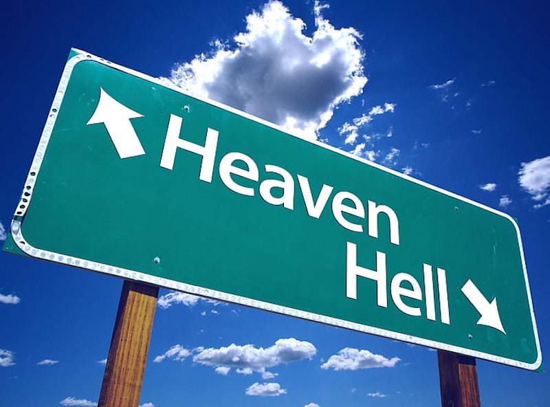 El santo varón le da la bienvenida y le comenta que como prueba final deberá de pasar un día en el paraíso y otro en el infierno, para que pueda elegir donde le gustaría permanecer por toda la eternidad.