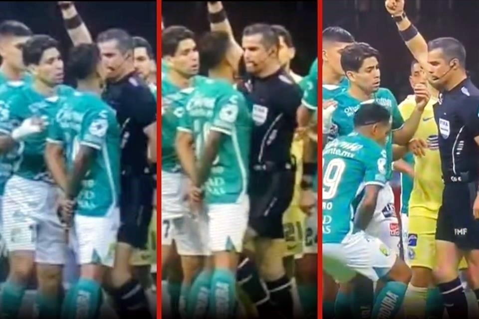 Después del primer gol del América, que parecía precedido de una mano que no fue revisada por el VAR, los jugadores de León se fueron sobre el árbitro y éste, se ve claramente en videos que circulan en redes sociales, le dio un rodillazo al argentino Lucas Romero.