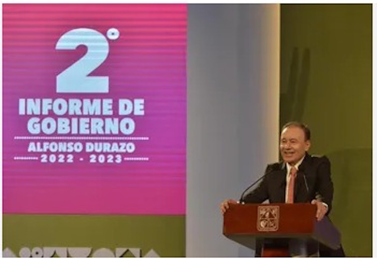Hizo suyos los logros que en materia de seguridad se han tenido en Hermosillo, (con el señalamiento de lo fuerte que está la violencia intrafamiliar), así como la inversión de trece mil millones de dólares en la planta de licuefacción en Puerto Libertad cuyos trabajos empezarán en enero, pero cuya inversión viene desde el gobierno de Bours concretándose en el de Claudia Pavlovich e iniciando en este sexenio. No es mérito propio como si lo es la planta fotovoltaica de Puerto Peñasco que tendrá un costo ya conocido de mil 500 mdd.